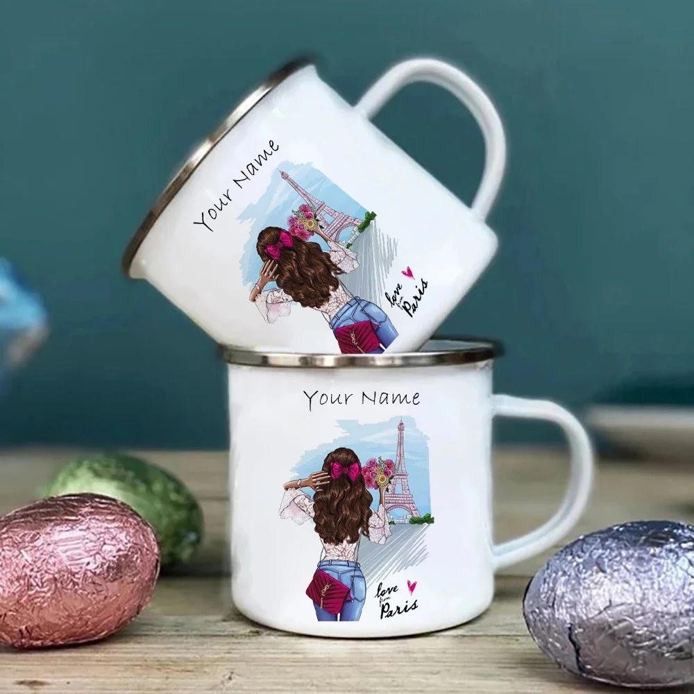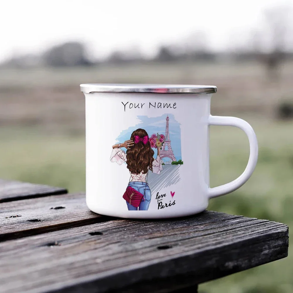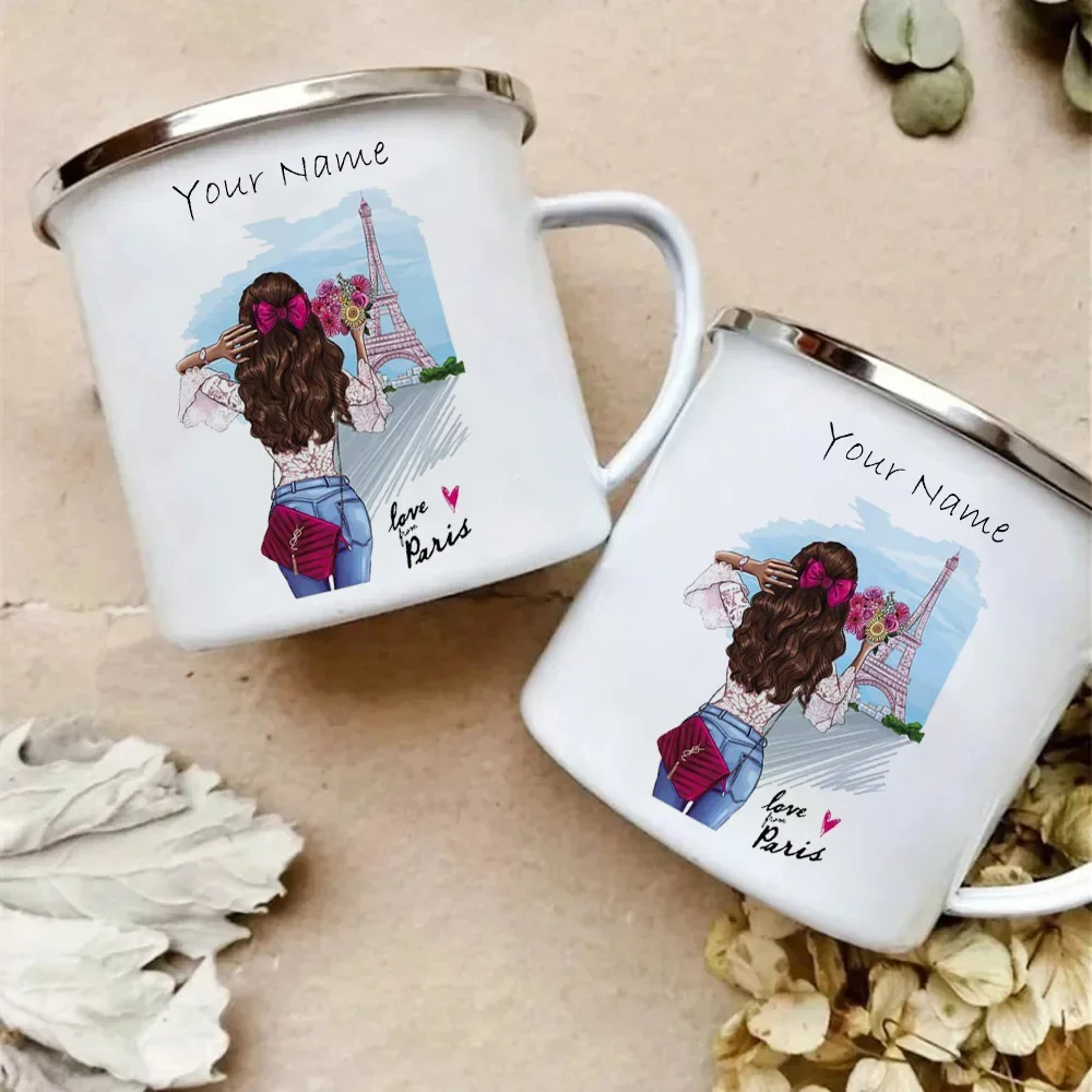 Customized Mug of Lady Enamel Under the Paris Tower Metal Cup for Printing Your Own Text Custom Mugs Coffee Cups Cupshe Beer Tea